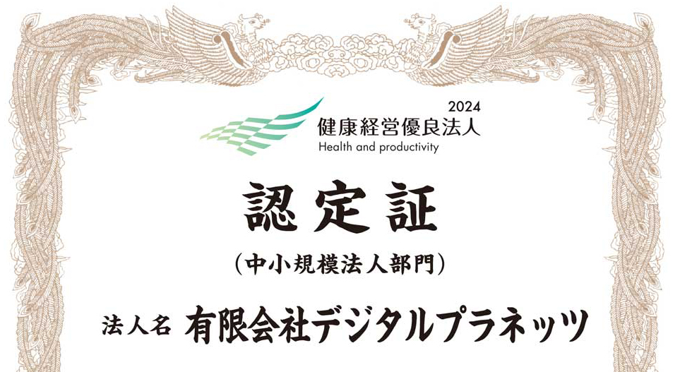 当社は、このたび経済産業省が認定する「健康経営優良法人2024(中小規模法人部門)」を取得しました。 健康経営優良法人認定制度とは、特に優良な健康経営を実践している大企業や中小企業等の法人を「見える化」することで、従業員
